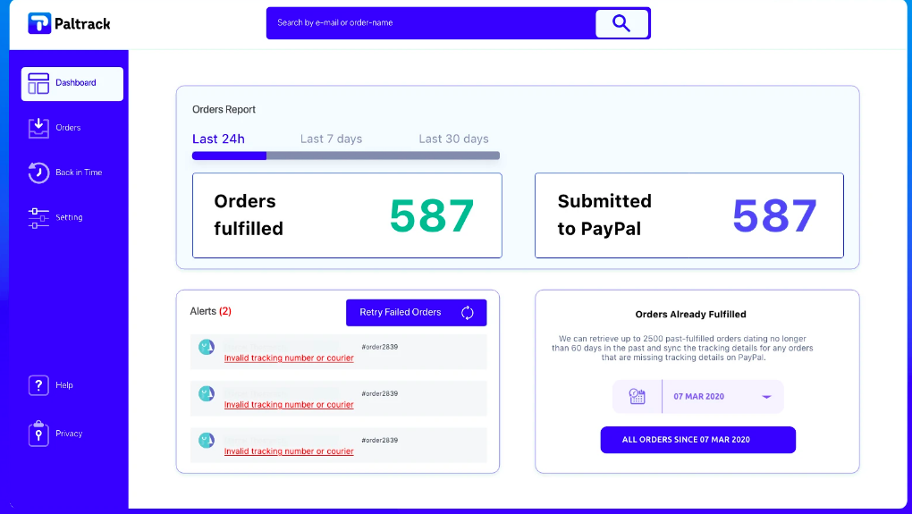 Our Back-In-Time feature allows users to retrieve and sync old orders that were fulfilled prior to the installation of Paltrack. This feature is exclusively a Paltrack feature. Leave nothing behind.