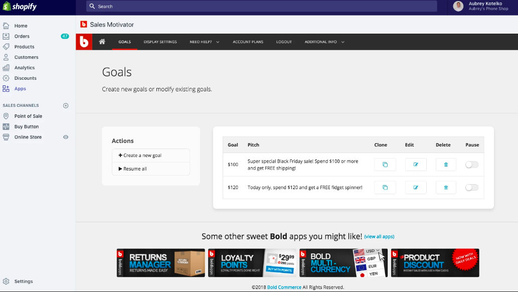 Integrate apps that can help you boost sales on your store and Bold Sales motivator is an advantage app. A simple app that provides interactive promotions to your target customers.
