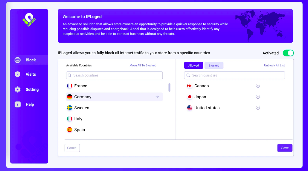 Boosting your online store can also draw competitors. Iploged as our App to protect store owners provides an advanced solution that gives store owners an opportunity to provide a quicker response to security while reducing possible disputes and chargeback. A tool that is designed to help users effectively identify any suspicious activities and be able to conduct business without any threats.