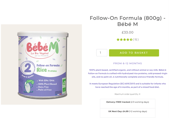 Look at this product page from Jadon.co.uk. The description immediately highlights the ingredients of the item as being plant-based and certified organic because they know the parents buying the product will be most interested in how natural it is.