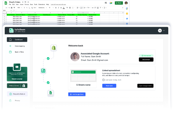 UpToSheets is a solution that allows you to automatically sync your Shopify order information with Google Sheets. This means that you’ll always have up-to-date data in Google Sheets, and you won’t have to waste time manually entering data which allows you to track your store’s performance easily.