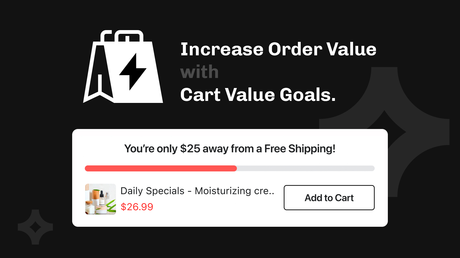 - Cart page free shipping bar. This one is our favourite! Add it to the top of your cart page together with a few great upsell products to communicate that customers are just a few steps away from free shipping. Upsell product also encourages adding additional products to the cart increasing that sweet average order value.